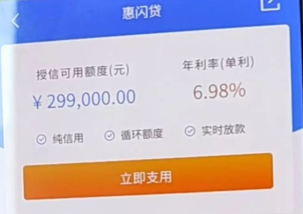 惠闪贷是面向优质小微客群推出的全在线、无抵押、纯信用小额贷款产品,最高贷款额度为300万元,额度随借随还,灵活用款。下面卡农社区为大家介绍一下惠闪贷的申请条件及流程。